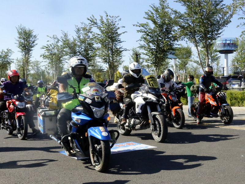 6月11日,「荒野之旅·獨庫有路」2022年獨庫公路自駕車首發儀式上的摩讬車騎行愛好者