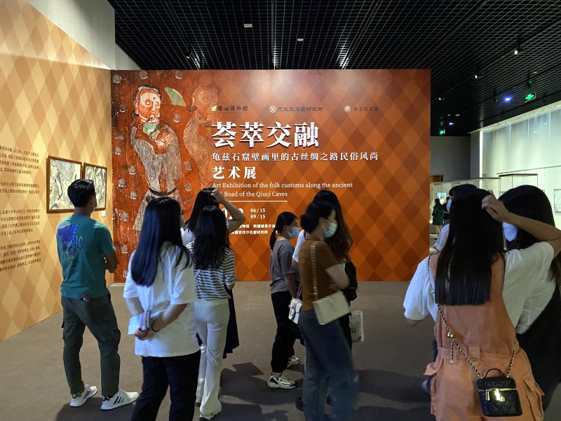 6月15日,「薈萃交融:龜茲石窟壁畫裏的古絲綢之路民俗風尚」藝術展吸引了不少年輕人來觀看。克孜爾石窟研究所提供
