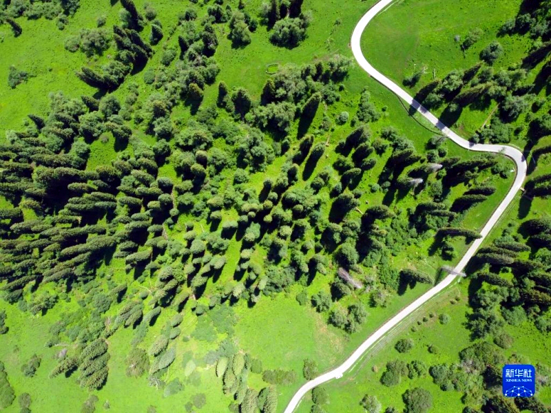 這是6月28日拍攝的那拉提旅遊風景區景色(無人機照片)。新華社記者 郝建偉 攝