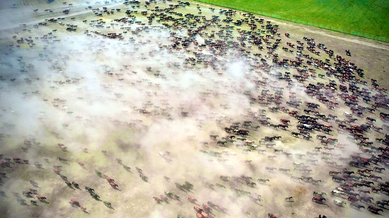 萬匹伊犁馬由遠及近奔騰而來