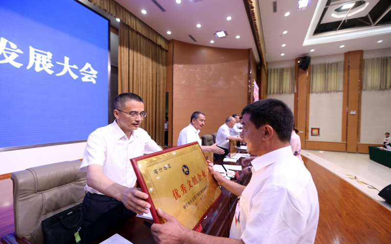 會上向榮獲國家和自治區級榮譽稱號的單位授牌,對喀什地區文化旅遊行業先進旅遊企業進行表彰。喀什全媒體記者 劉孟馨 攝
