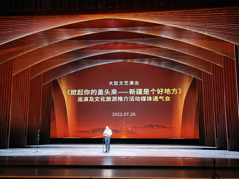 7月26日,由中宣部、文化和旅遊部、新疆維吾爾自治區人民政府共同打造的《掀起你的蓋頭來——新疆是個好地方》大型文藝演出及文化旅遊推介活動媒體通氣會在烏魯木齊大劇院舉辦。