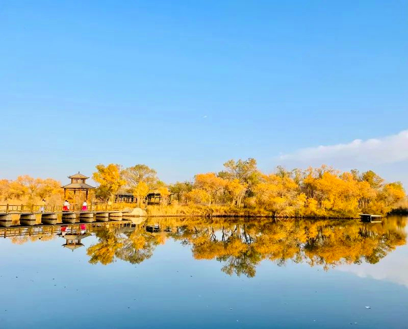 澤普的胡楊和湖水相依相伴。李曉燕攝