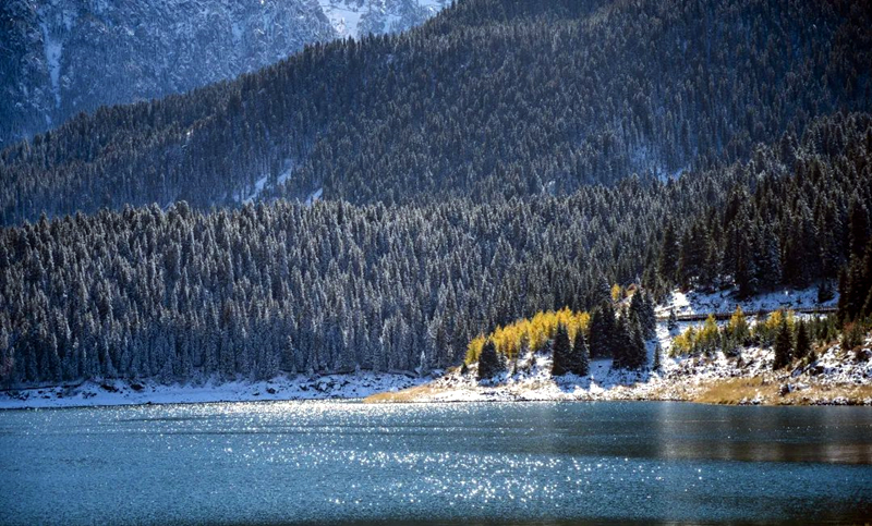 第二天,前往天山天池景區,漫山遍野的雪嶺雲杉蒼勁挺拔,與冬日的潔白交相輝映,更顯生機勃勃。放慢腳步,沿着雪嶺雲杉守護的步道一路向前,感受着山間清雅的松木香,別有一番韻味!