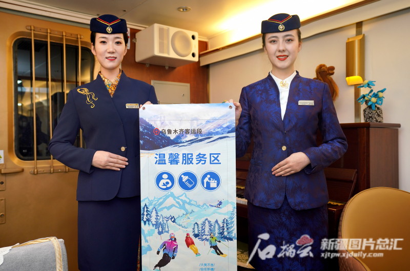 12月26日,「中國雪都·阿勒泰號」冰雪遊列車全體列車服務乘員將為每一位乘客提供優質服務。石榴雲/新疆日報記者 張萬德 攝