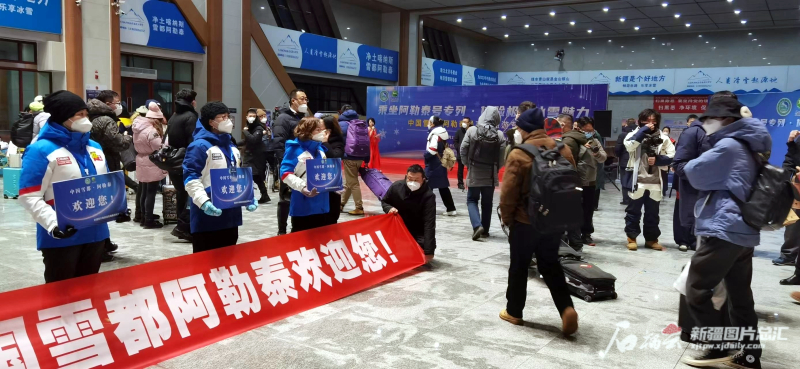 阿勒泰地區歡迎乘坐「中國雪都·阿勒泰號」旅遊專列的乘客。 劉新海攝