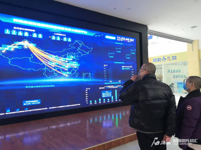 第十六屆新疆冬博會上,人們關註「智遊阿勒泰」小程序 石榴雲/新疆日報記者任江攝