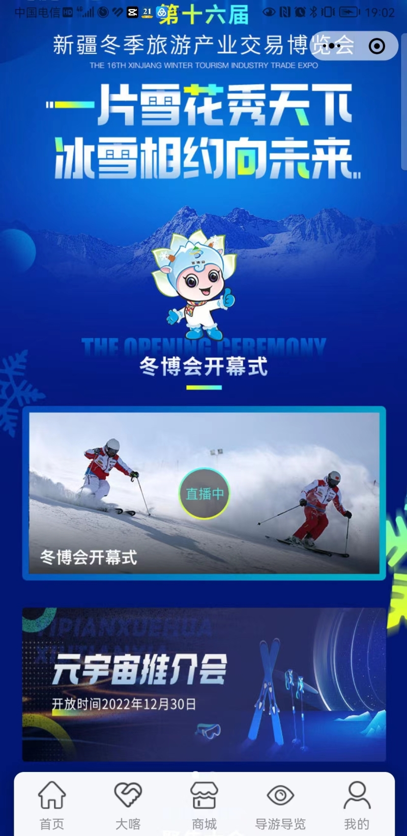 在手機上打開「智遊阿勒泰」小程序,進入冬博會頁面,能看到此次冬博會的整體概況,其中就有「元宇宙推介會」。通過個人IP登錄元宇宙頁面,挑選個人專屬的虛擬人物,可以在虛擬空間內了解全疆14個地州市的推介內容。