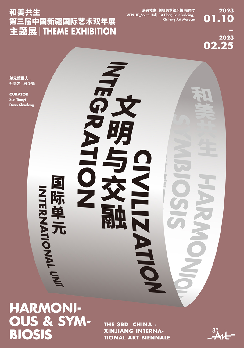 第三屆中國新疆國際藝術雙年展由中華人民共和國文化和旅遊部、新疆維吾爾自治區人民政府主辦,由文化和旅遊部國際合作與交流局(港澳台辦公室)、新疆維吾爾自治區文化和旅遊廳承辦,第三屆雙年展以「和美共生」為主題,從新疆的區位人文特點和未來前瞻的開放優勢出發,着眼於新疆發展的未來藍圖,以「開放」「交融」 「生態」作為此次展覽策展的關鍵詞,通過一次極具全球視野的國際藝術雙年展,探索、試驗與展望新疆未來的文化藝術生態,從而拓寬新疆的對外文化交流,與此同時提升新疆的文化創新內涵,展現新疆的文化活力,全方位呈現新疆文化藝術之美、生態文明之美、人文景觀之美。本次展覽由中央美術學院美術館館長、博士生導師張子康先生擔任總策展人,由新疆美術館館長王樹聲先生,原新疆畫院院長白鋼先生擔任展覽總監。本屆雙年展將於2023年1月10日開幕,展覽將持續到2月25日。
