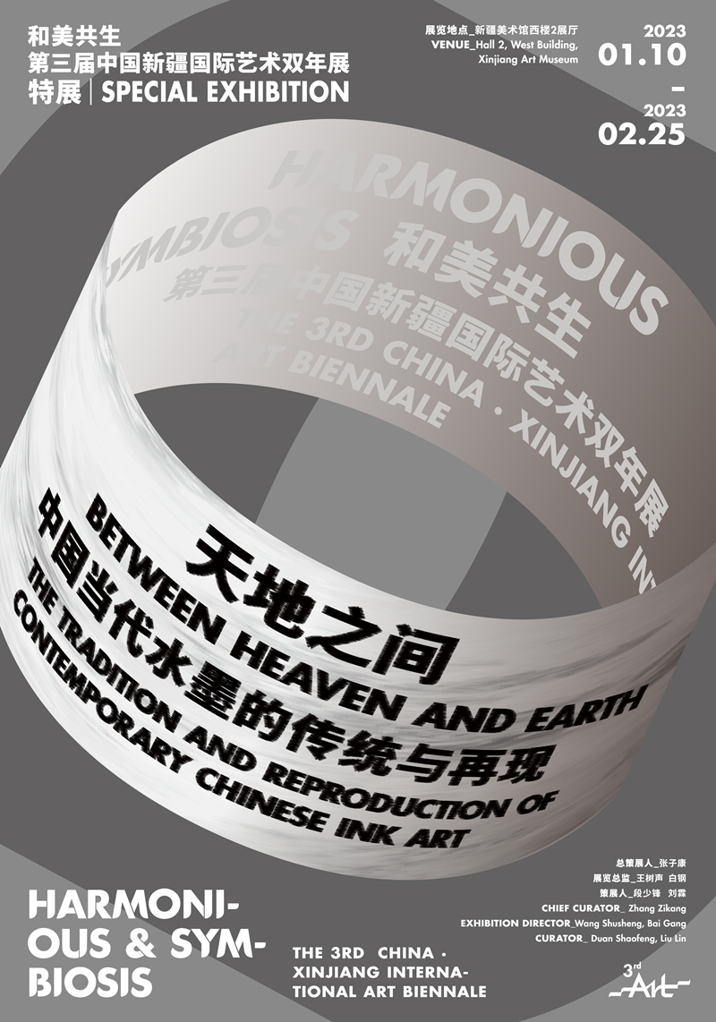 第三屆「中國新疆國際藝術雙年展」專門設置中國當代水墨邀請展,匯聚國內享譽國際的中國畫藝術家以及正在成長起來的青年藝術家,形成本屆雙年展當代水墨單元,集中呈現1980年以來湧現出來的中國最為優秀的水墨藝術家,以他們為樣本呈現中國當代水墨的發展現狀。如何利用中國水墨畫資源,以中華文化為根基,促進中國畫在當下形成新的表達語境,為提高中華文化軟實力做出更大的文化貢獻,這也是本次展覽策劃的視角。本次展覽以「天地之間」為主題,以中國「天人合一」的傳統文化思想為基礎,以天地演化和萬物不息體現中華文化的發展觀。「天地之間」亦體現出中國文化的氣勢磅礴和大千氣象,從「天地之間」演變為展覽的四個單元:山水間、人世間、風物間、境象間,以此契合當代水墨的四種表達趨向。