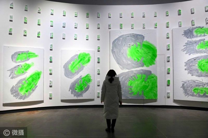觀眾在第三屆中國新疆國際藝術雙年展上參觀。 張澤歡攝