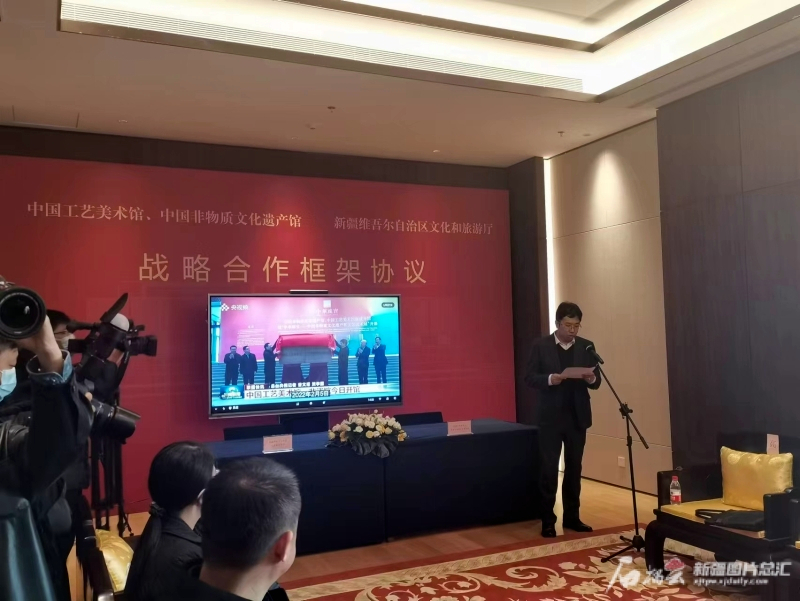 在新疆維吾爾自治區黨委和政府的高位推動下,新疆非遺館建設進一步推進,將成為新疆文化建設的重大品牌。2月6日下午,北京,中國工藝美術館、中國非物質文化遺產館與新疆文化和旅遊廳簽署新疆非物質文化遺產館建設戰略合作框架協議,雙方將就新疆非遺館的展陳理念、展覽內容、展陳形式等開展合作。