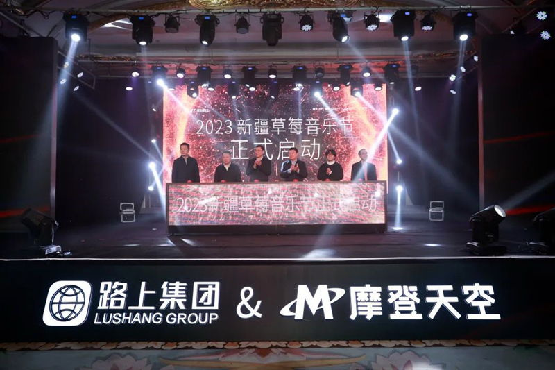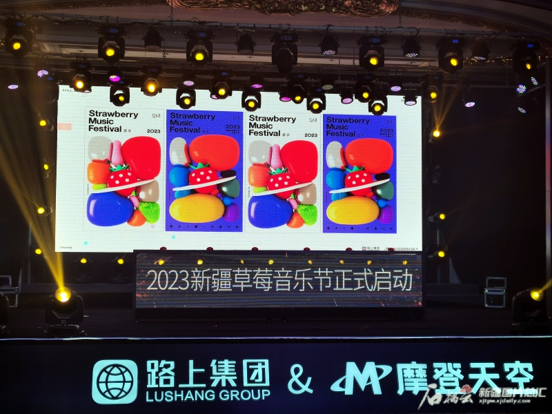 12日,2023新疆草莓音樂節啟動儀式暨路上實業集團&摩登天空戰略合作發布會在烏魯木齊舉行。石榴雲/新疆日報記者 李莉攝