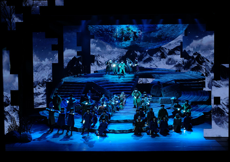 「講一個故事是容易的,但是用兩個小時藝術呈現魏德友老人在國境線堅守50年的事跡,深感責任重大,這期間不斷在打磨劇本,修改創作思路,力求用最出色的演繹,彰顯這位老兵一路的理想與堅持,向一代又一代英雄的護邊員集體致敬。」導演伊斯拉木江·瓦力斯還介紹說,在音樂創作方面,無論是動情的詠嘆,還是激昂的合唱,都呈現出極強的現代音樂風格和濃郁的民族風情。其中還運用了傳統的呼麥和電音,帶入了現代感,這樣更符合年輕人的藝術審美。「我們認為,藝術需要傳承,就必須能夠吸引年輕一代觀眾走進劇院來欣賞藝術,所以最終呈現出這部現場樂隊和交響樂隊相結合,現代音樂劇形式與民族藝術表達融合的致敬之作。」