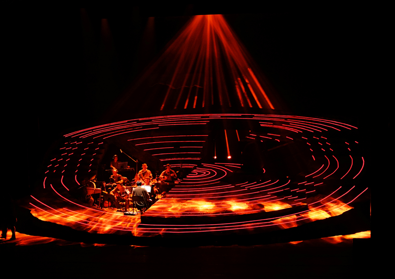 「在舞台場景設計上,我們設計了一個白楊樹的年輪作為舞台核心,以放大的、符號化的形象結構,以白楊象徵魏德友老人在艱苦環境中毅力紮根的精神,用年輪隱喻他守護國門,奉獻青春的一生。藝術與現實的多元表達,融入大量的民族風情與生活細節,讓觀眾沉浸式代入魏德友老人作為巡邊員所處的時代畫面和生活畫面。」舞美設計申奧在接受採訪時說到。