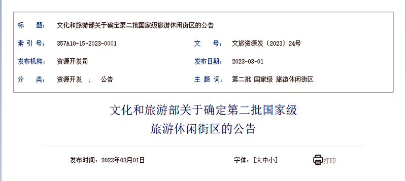 關於確定第二批國家級旅遊休閑街區的公告