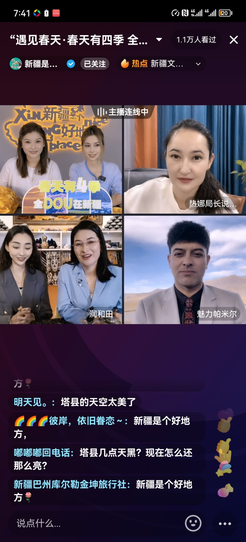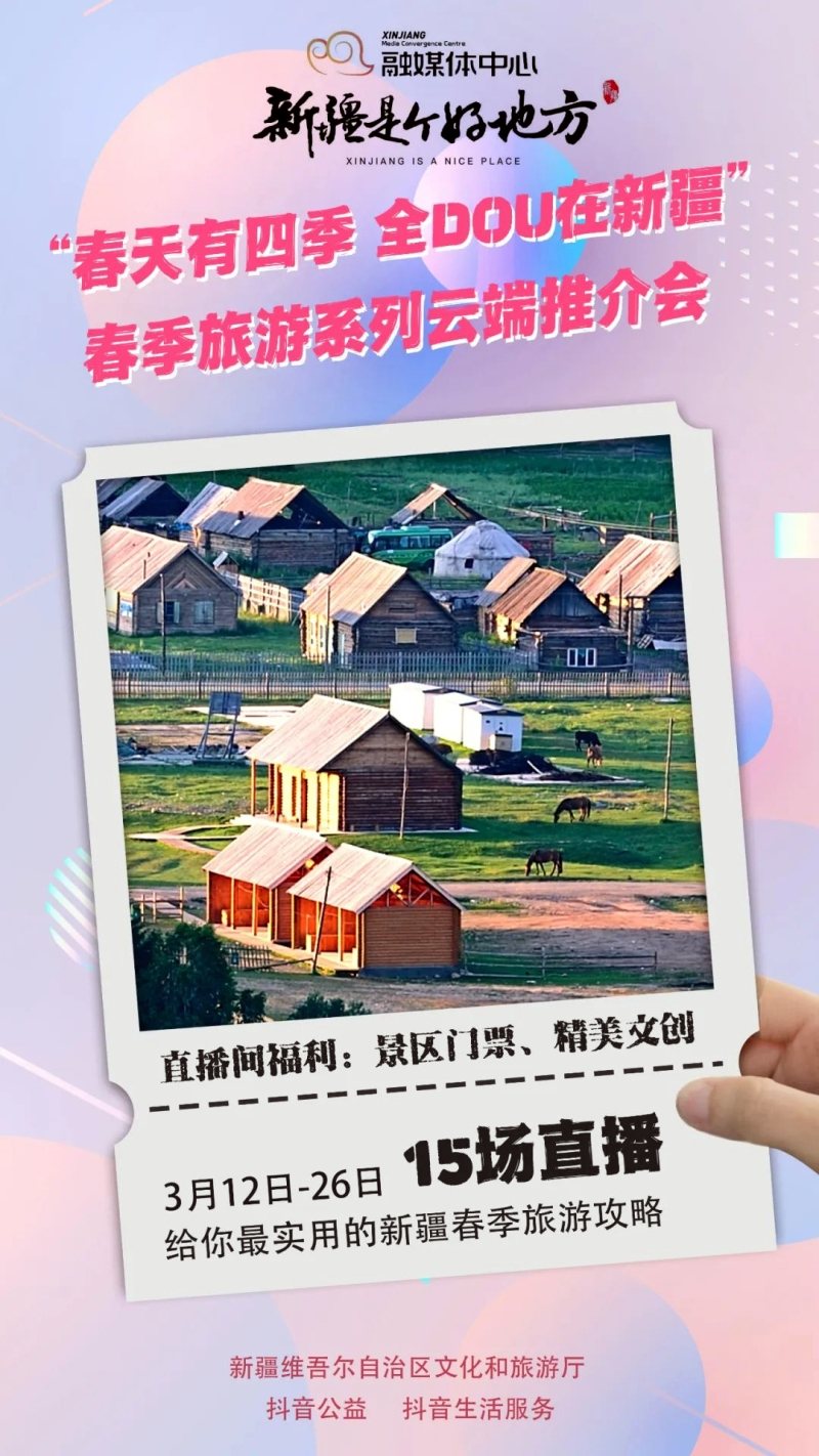 「春天的新疆怎麼玩?直接問局長!」3月12日,「春天有四季 全DOU在新疆」春季旅遊系列雲端推介會推出首場直播,網友們跟着鏡頭,感受新疆春的魅力。該活動由新疆文化和旅遊廳主辦,從3月12日持續到3月26日,共計15場。