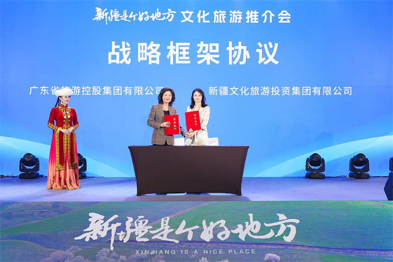 現場,新疆文旅企業分別與廣東文旅企業、旅遊行業簽署了戰略合作協議,旨在通過利用資源差異,搭建起優勢互補的新平台,促進疆粵兩地文旅行業合作共贏的新局面。