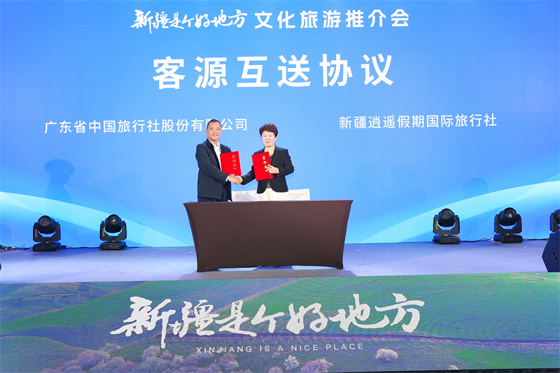新疆逍遙假期國際旅行社和廣東省中國旅行社股份有限公司簽約客源互送協議 圖片來源:新疆文化和旅遊廳