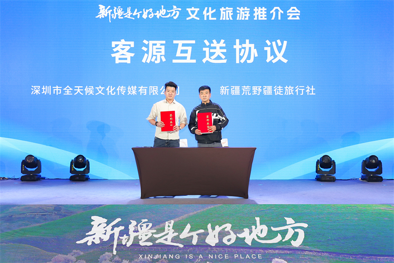 新疆荒野疆徒旅行社和深圳市全天候文化傳媒有限公司簽署客源互送協議協議 圖片來源:新疆文化和旅遊廳