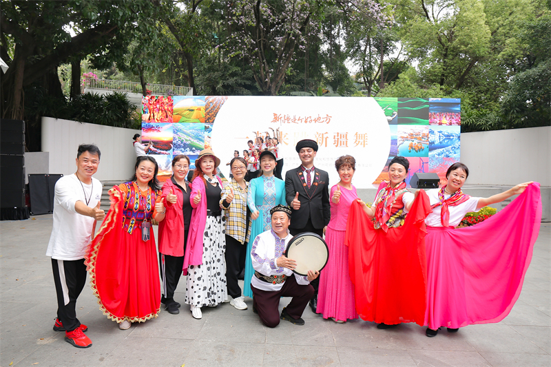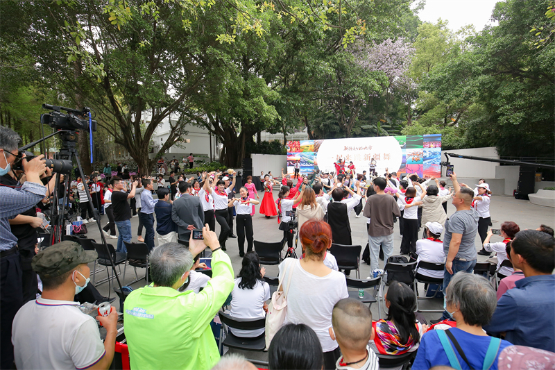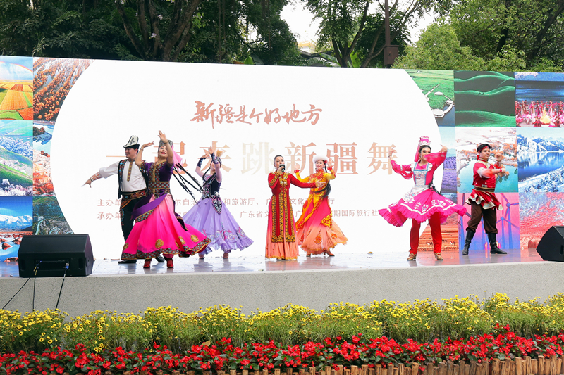 作為「新疆是個好地方」文化旅遊推廣活動的重要組成部分,當日「一起來跳新疆舞」進廣場聯誼活動走進廣州市越秀公園。來自新疆藝術劇院的演員們行雲流水的舞步和美麗的裙擺在春日中綻放,她們的舞姿或柔美婉約,或激情澎湃,或靈動飄逸,舞出了心中的喜悅,優美動人的民族舞蹈,高亢悅耳的民族歌曲,給觀眾們獻上了一場視覺和聽覺上的饕餮盛宴。