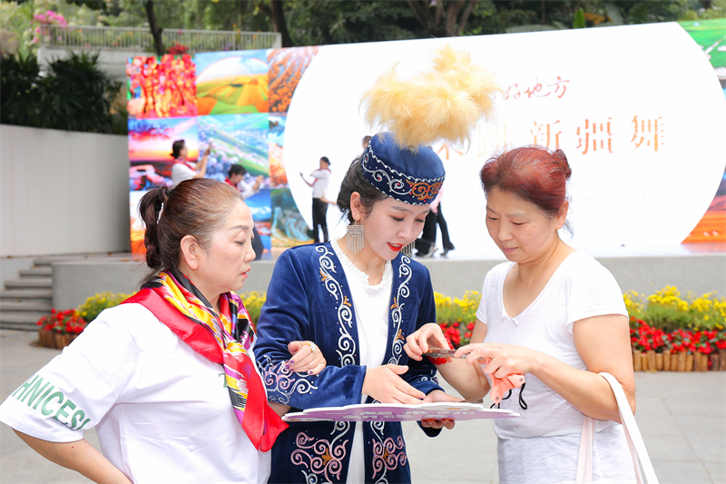 新疆藝術劇院演員現場進行舞蹈教學,近距離完成一對一的藝術體驗,讓在場嘉賓感受到新疆傳統與時尚結合的藝術魅力。隨後向在場嘉賓發放惠民活動大禮包,在促進兩地人文交流的同時,推介新疆旅遊產品,讓廣州市民了解新疆、走進新疆、愛上新疆。