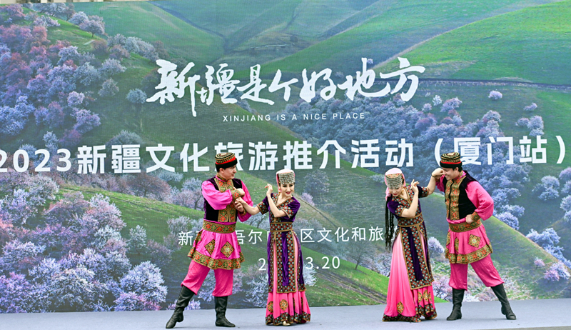 「我走過許多地方,最美的地方就是新疆……」2023年3月20日,新疆文旅廳主辦的「新疆是個好地方」文旅推介活動在廈門舉辦。活動把新疆的美景、美食、歌舞帶到廈門市民身邊。新疆文旅廳領導和來自新疆和田地區、阿勒泰地區、烏魯木齊市、吐魯番市、博爾塔拉蒙古自治州、昌吉回族自治州、伊犁哈薩克自治州等地文旅部門負責人,新疆、福建兩地相關文旅企業家和市民代表200多人參與該活動。在現場,新疆和福建文旅行業企業簽署客源互送戰略合作協議,進一步擴大交流合作,聯合打造特色旅遊品牌。