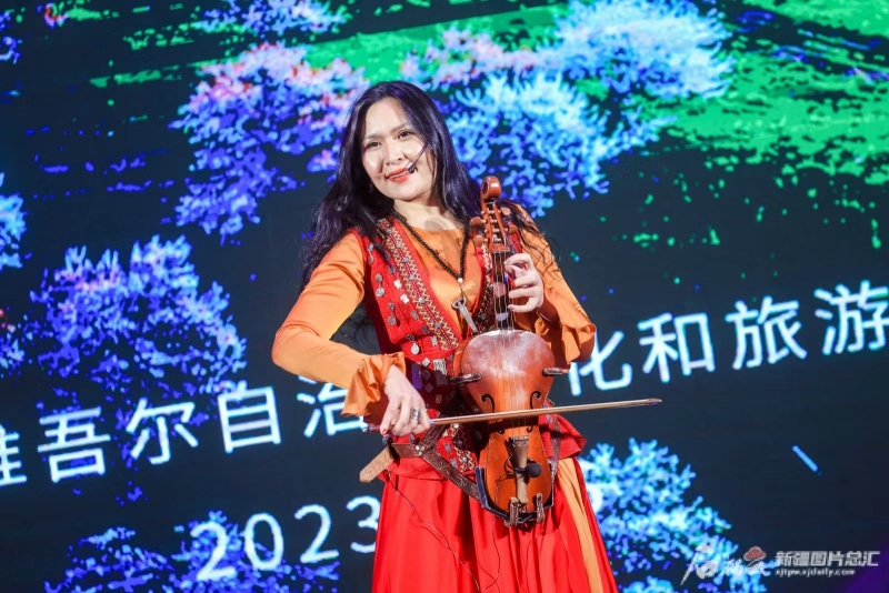 3月26日,「新疆是個好地方」文化和旅遊推介會南京站現場,演員正在表演。石榴雲/新疆日報記者 阿比拜攝