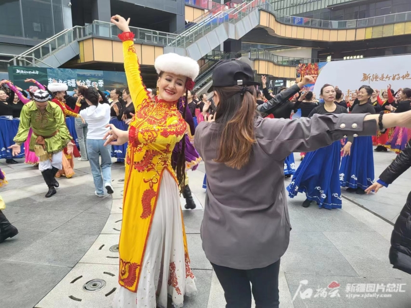 活動現場,她與小夥伴一起來到現場,與舞蹈老師一起「斗舞」,以舞會友,感受原汁原味的新疆歌舞。「剛才聽舞蹈老師說4月新疆將有文化藝術節,到時候有很多舞蹈劇目,大家激動地說要馬上訂機票去新疆看演出。」李君梅說。