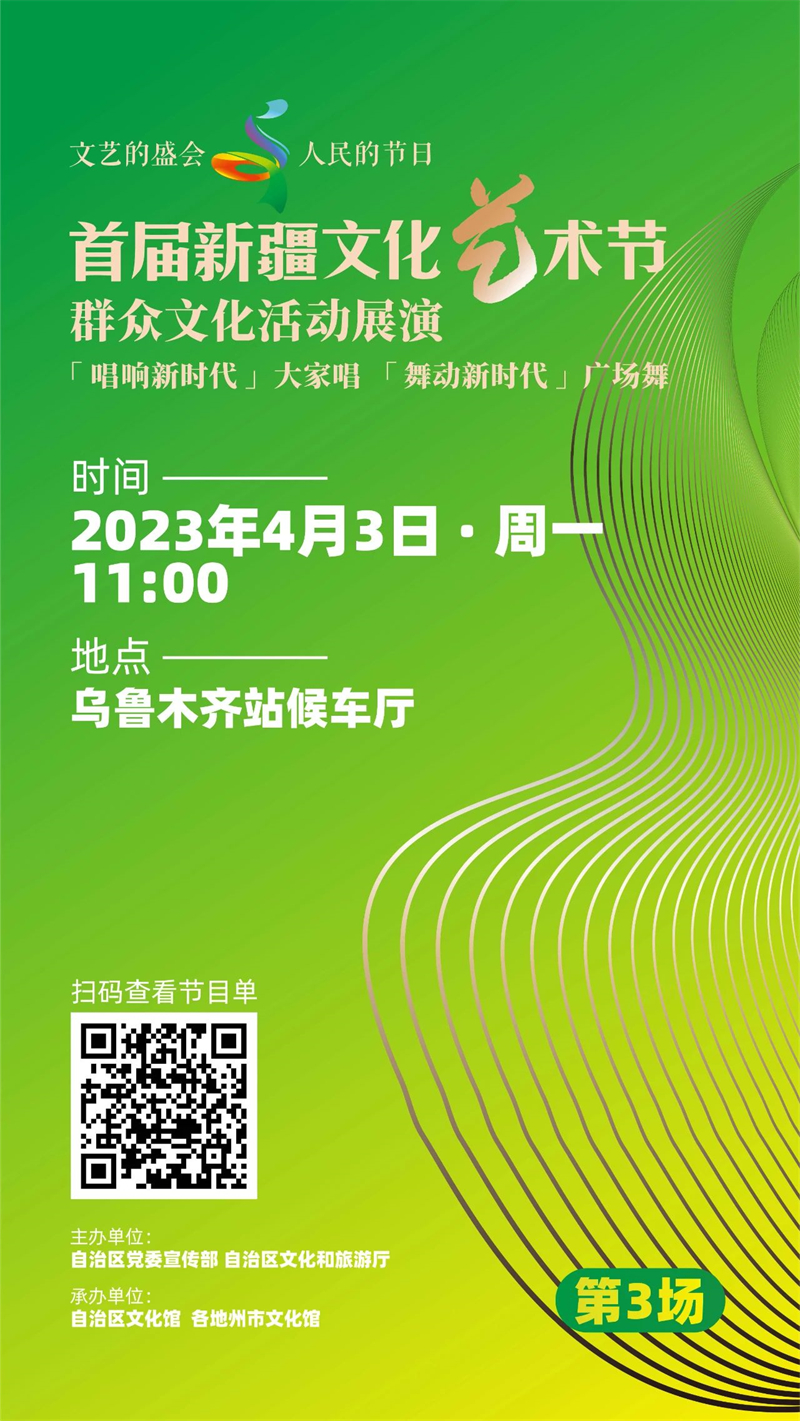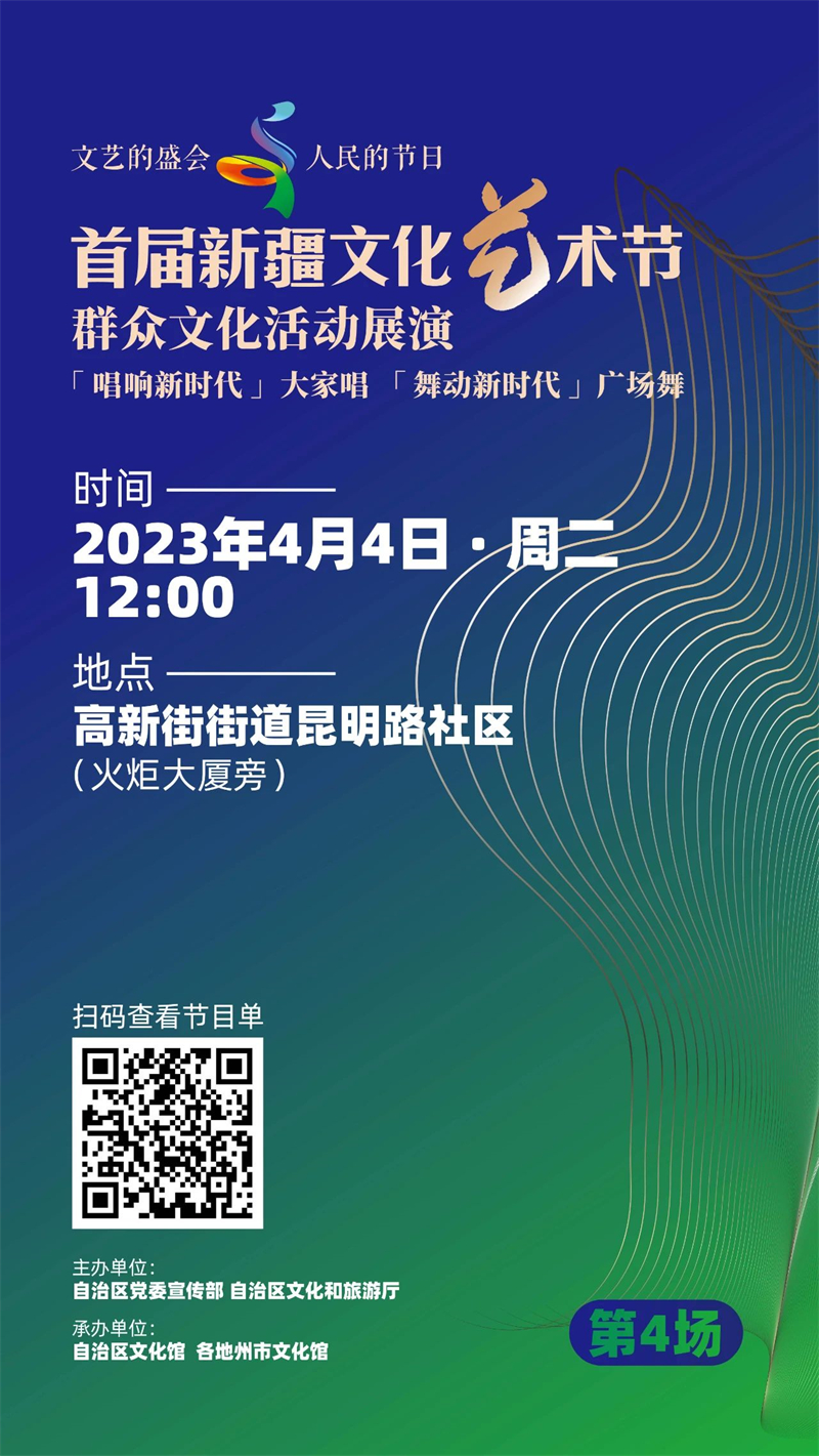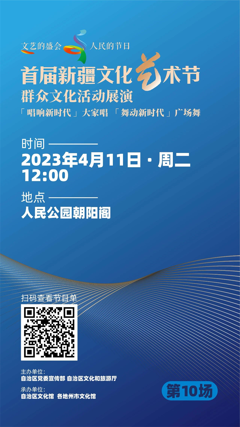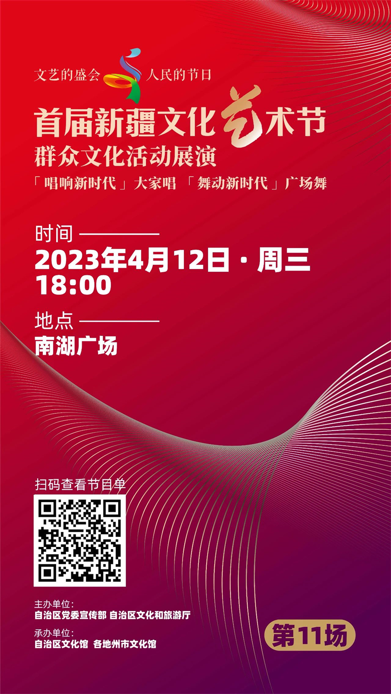 展演時間與藝術節開幕式保持同步,4月1日啟動,持續演出至4月12日(清明節輪空一天),展演活動將先後在新疆國際大巴扎、紅山公園、人民公園等景點、會展中心、南湖廣場、高鐵站104團老君廟側廣場等地演出,快來看看吧!