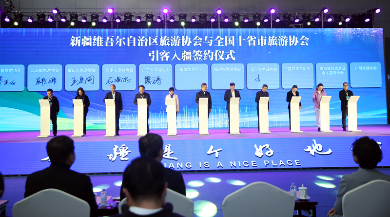 開幕式上,新疆旅遊協會與北京、山東、河南、陝西等10個省市區旅遊協會現場簽約,就旅遊資源共享、項目推進、旅遊宣傳、「引客入疆」等方面合作達成戰略協議,共促新疆旅遊提檔升級、高水平發展。
