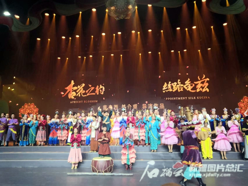 庫車市打造的歌舞劇「杏花之約 絲路龜茲」演出。石榴雲/新疆日報記者任江攝