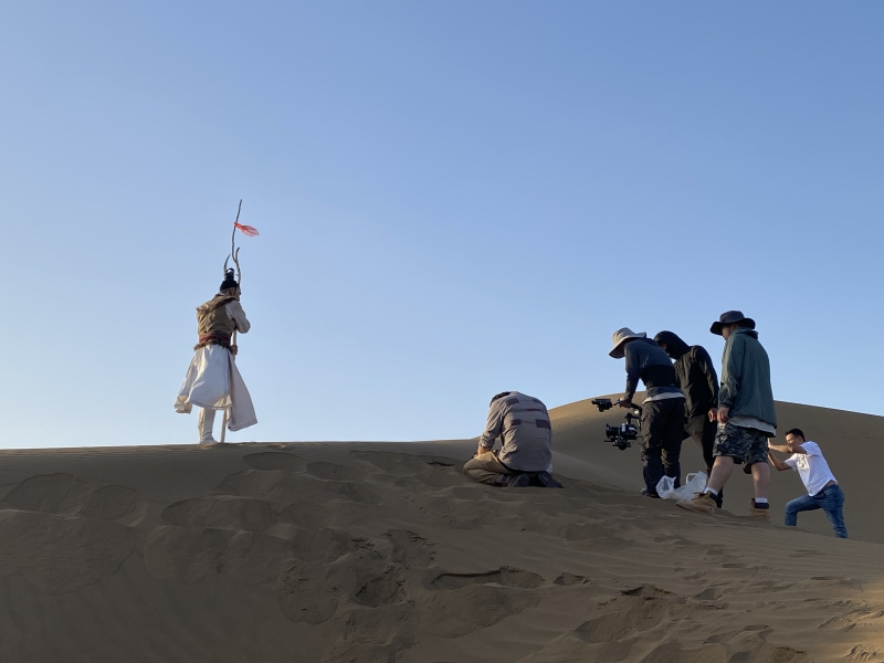 攝影團隊在庫木塔格沙漠為本次宣傳片拍攝。劉瀟然攝