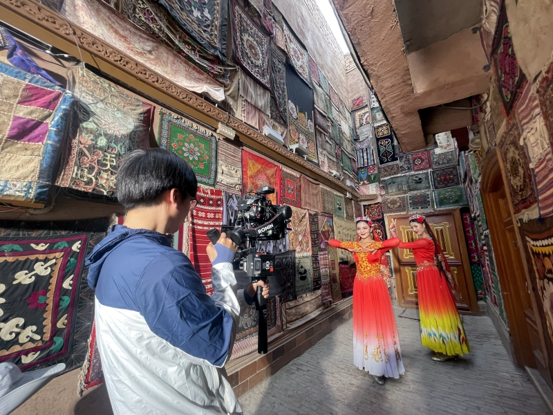 攝影師在喀什古城為本次宣傳片拍攝。雲龍攝