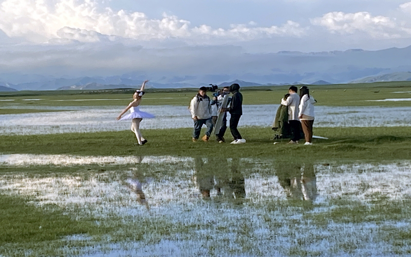 攝影團隊在巴音布魯克景區為本次宣傳片拍攝。劉瀟然攝