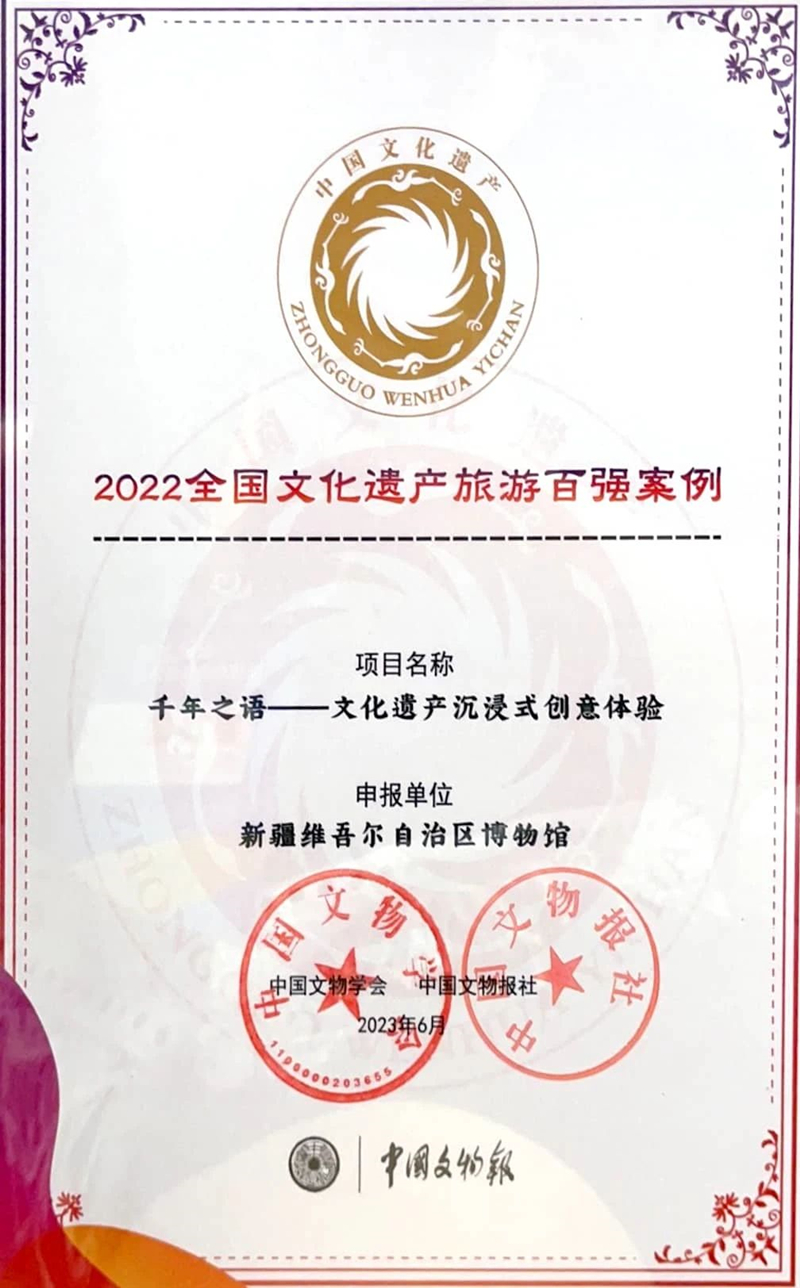 2023年新疆首部博物館沉浸式文物創意舞台劇《千年之語》取得以下獎項: