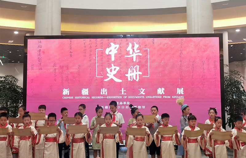 《中華史冊——新疆出土文獻展》共分「簡帛文書」「紙質文書」「碑刻墓誌」「研究保護」4個部分,展出文物150件/組,並輔之以豐富的陳設語言、全面的輔助展示、生動的媒體互動,深刻闡明新疆是中國神聖領土不可分割的一部分;新疆各民族文化始終紮根中華文化沃土,是中華文化不可分割的一部分;中華文化認同是新疆各民族文化繁榮發展之基。