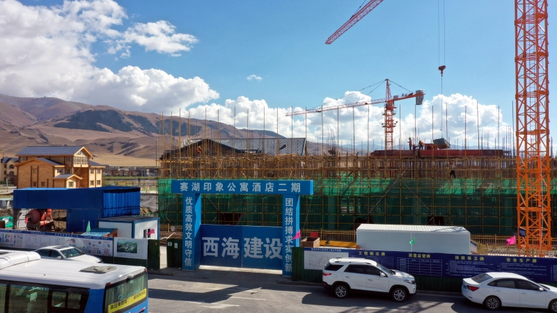 8月16日,賽裏木湖景區正在建設中的印象公寓酒店二期 。賽裏木湖景區管委會供圖