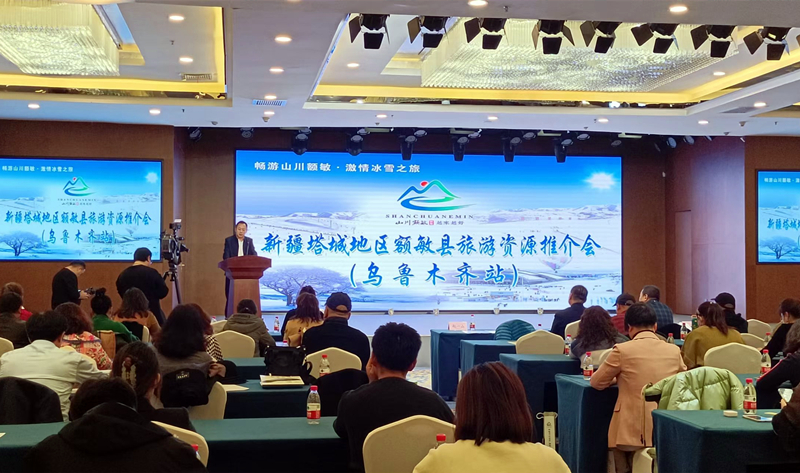 11月14日,新疆塔城地區額敏縣冬季旅遊推介會活動第五站在烏魯木齊舉行,推介會以「暢遊山川額敏•激情冰雪之旅」為主題,全面推介額敏的冰雪旅遊資源、特色美食、文化旅遊商品及精品線路,提升「山川額敏 越來越好」旅遊品牌知名度、美譽度。
