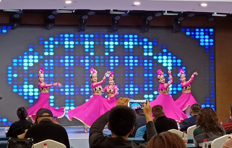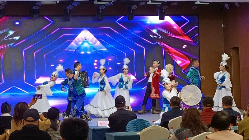 14日,新疆塔城地區額敏縣冬季旅遊推介會現場文藝演出。