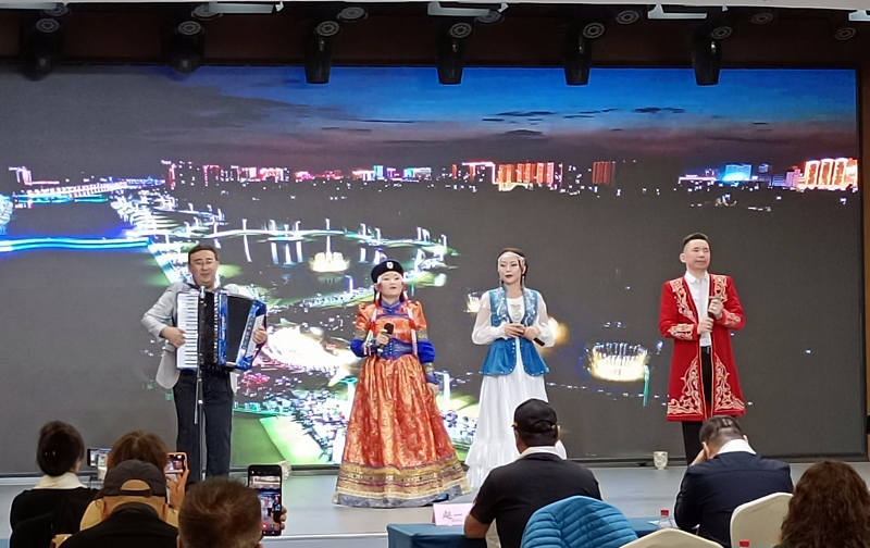 據了解,額敏縣「相約冰雪之旅•暢遊山川額敏」冬季冰雪旅遊推介月活動於11月1日開啟,為期15天,此次推介會是繼在成都、西安、福建、廣州等多個大城市開展繫列推介活動之後的最後一場推介活動。活動現場,精彩的歌伴舞《燕子》、哈薩克族傳統樂器薩孜斯爾乃演奏的《天鵝》、本土原創歌曲《也迷裏》、《美麗的家鄉額敏》、集體舞《駱駝舞》、《草原美》等精彩的節目輪番登場,與會嘉賓身臨其境感受額敏的人文之美,紛紛拿出手機記錄這一美好時刻。