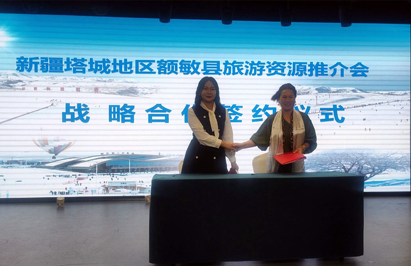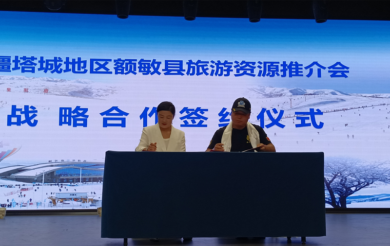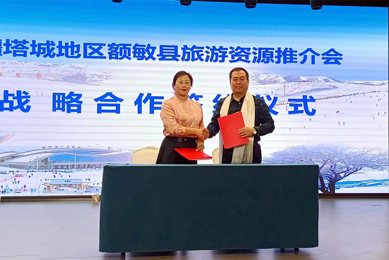 14日,新疆塔城地區額敏縣冬季旅遊推介會現場簽約儀式。