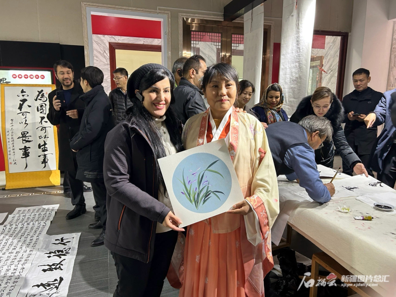 書畫教師李梅是霍爾果斯市中國文化館一名志願者,她筆下雋秀美麗、栩栩如生的蘭花吸引了伊朗旅遊公司經理馬赫希德·扎德赫拉亞特駐足觀看。身着漢服的李梅告訴伊朗嘉賓,蘭花在中國是君子的象徵,寓意淡泊、豁達、高雅、堅貞。看到扎德赫拉亞特如此喜歡她的畫作,便贈予她作為紀念。