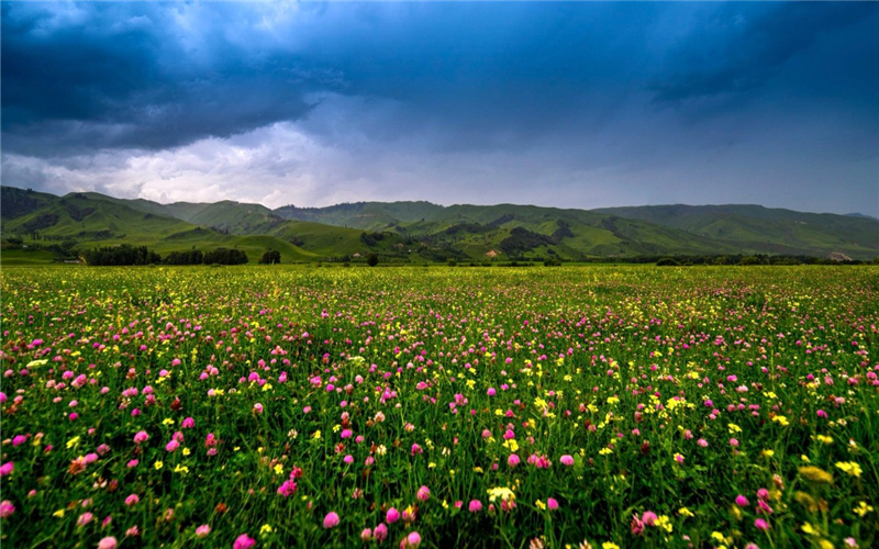 在新疆,有一種:一碧千裏、翠色慾流的美,叫伊犁。夏季的伊犁,紫色花海瀰漫山谷,青綠色的草原洋溢浪漫。伊犁很美,美在夏至時綠浪湧動,花海延綿,草長羊肥的那拉提草原。