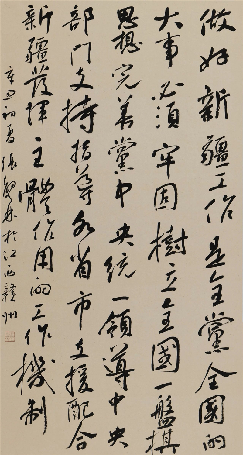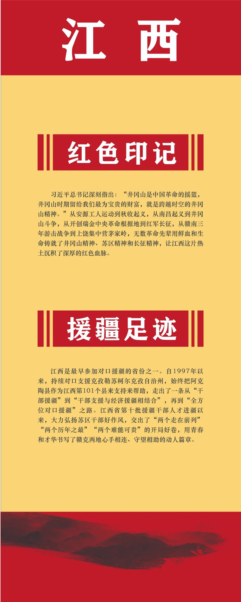 讓我們一起品鑒藝術芬芳,感悟時代召喚,進一步凝聚起勇擔新使命、奮進新征程的磅礴偉力,為建設團結和諧、繁榮富裕、安居樂業、生態良好的新時代中國特色社會主義新疆貢獻智慧和力量!現在就讓我們一同走進線上展覽的第十四篇章——江西。