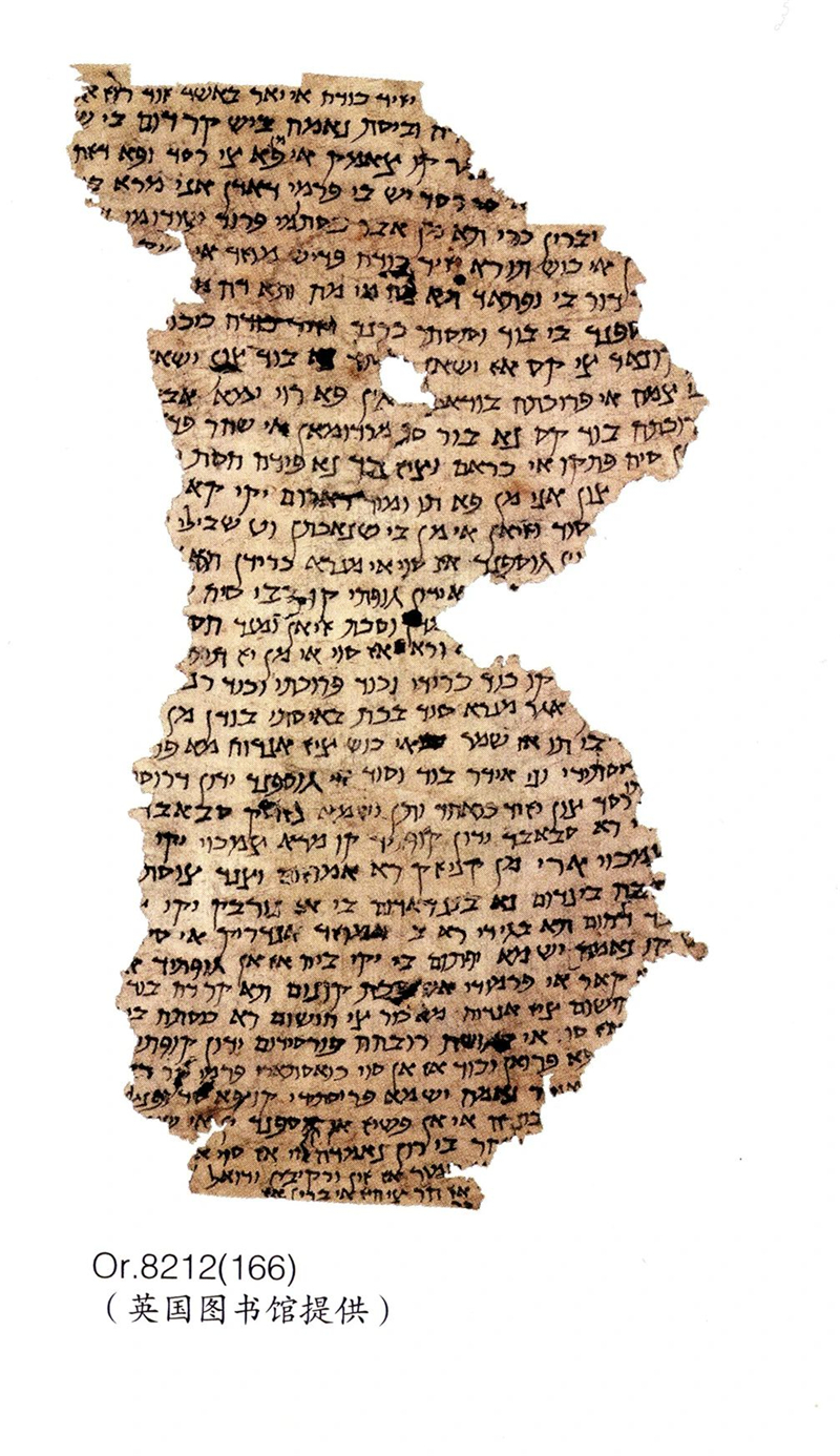 《希伯來字波斯語書信》,丹丹烏裏克遺址出土,九世紀寫本,長40釐米,寬28釐米,存文字38行,保存完好,僅尾部略有破損。此件文獻為一封希伯來字波斯語書信,主要內容包括三部分:首先,向收信人致以問候;其次,講述寫信人為了從地主處得到羊,派人去山上送禮,禮物已經送出去但羊還沒有到手;最後,提到他及同伴都接受了收信人的建議。此件文書與Or.8212/166在用紙、書寫、正字法、語言、內容等方面都有很強的相似性,且其中出現了三個相同或相似人名地名,因此這兩件文獻當出自同一時代同一地區,且有可能出自同一人之手。