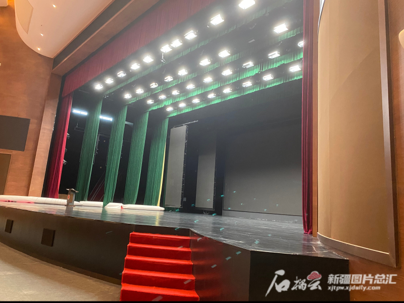 劇場舞台是鏡框式舞台,由一個主台和兩個側台組成,建築台口寬24米,高11米,配備有先進的聲、光、電等舞台設備。石榴雲/新疆日報記者趙梅攝