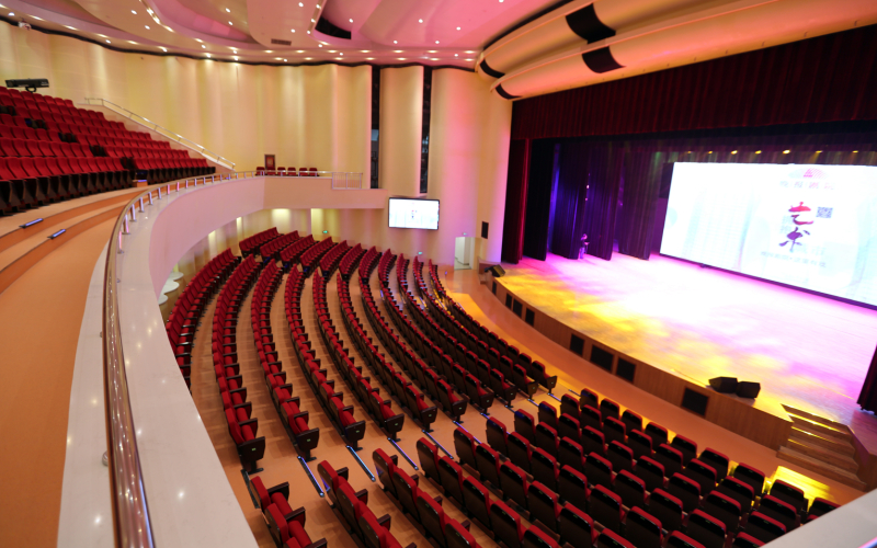 走進劇院,舞台正中間100多平方米的高清LED主屏引人註目,舞台兩側還各有一塊5平方米的側屏。主舞台台口寬18米、凈空高9米,舞台深12米,兩側側台各12米,而三階電動升降舞台能夠滿足不同演出需求,還有電動升降景桿、燈桿、電動開合幕與可調整舞台大小尺寸的電動假台口等先進設施。舞檯燈光採用MA2控台,設備是國內燈光一線品牌,能滿足綜藝晚會、話劇、兒童劇、音樂會等各類演出。