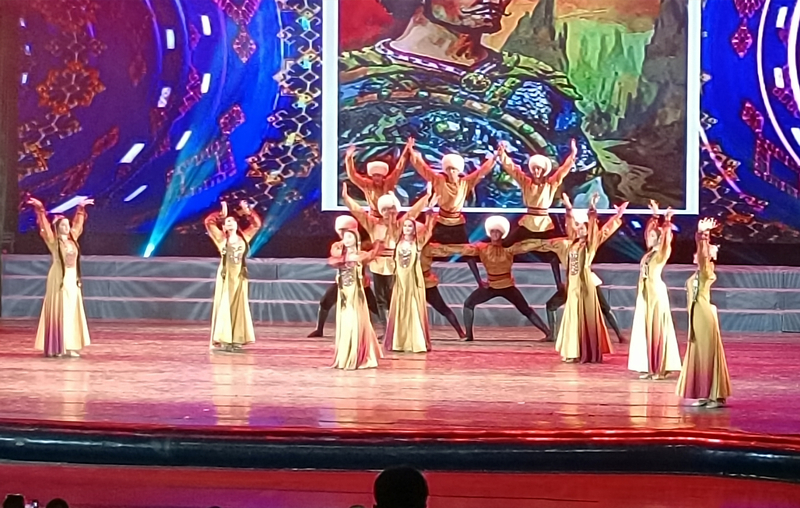 7月31日,土庫曼斯坦國家舞蹈團歌舞晚會《來自土庫曼的藝術之花》在新疆人民劇場上演。