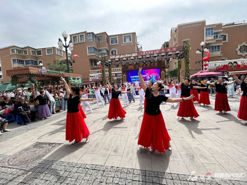 7月30日,第六屆中國新疆國際民族舞蹈節配套活動——「一起來跳新疆舞」烏魯木齊市廣場舞展演活動,在新疆國際大巴扎步行街舉行。石榴雲/新疆日報 記者張小宓攝